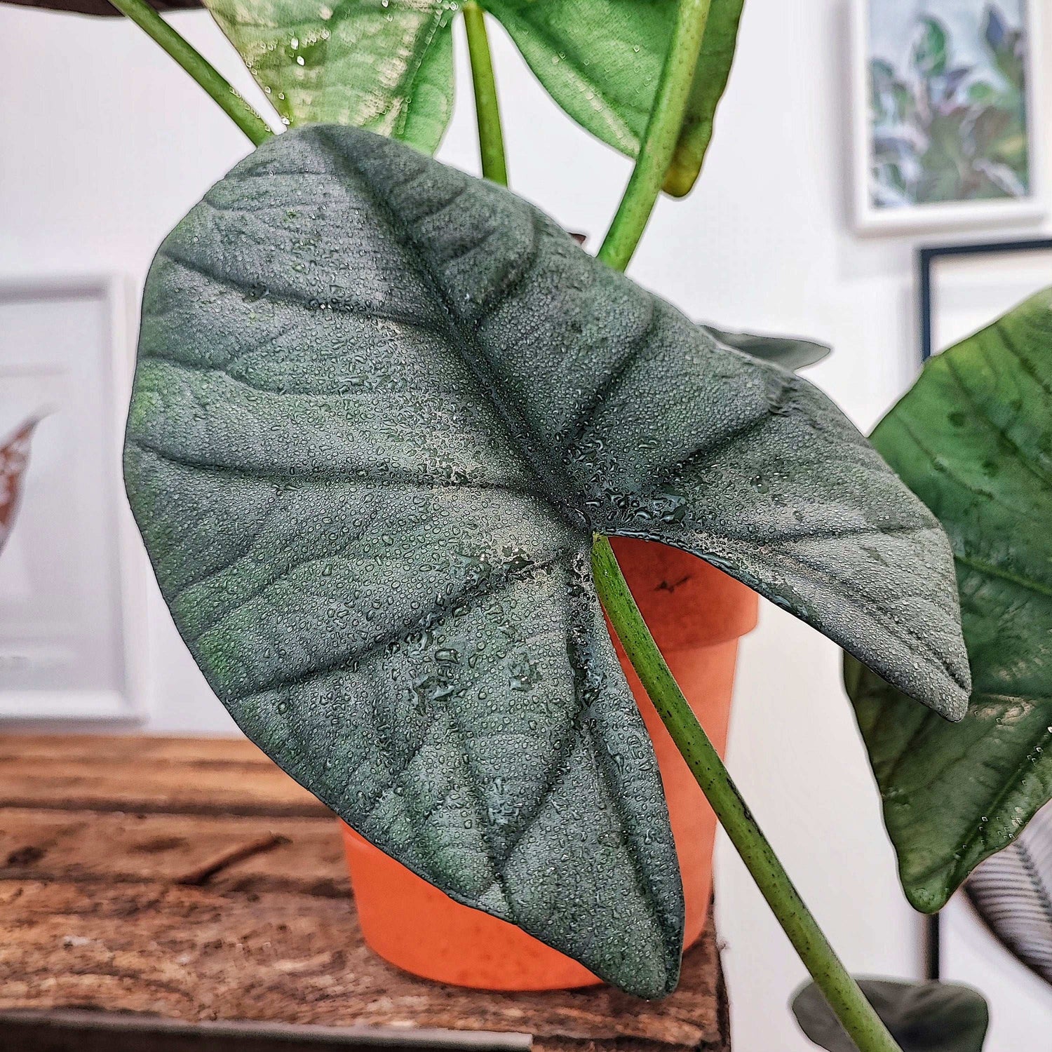 🌪 Feuilles larges, nervurées, avec un éclat argenté unique. Une variété rare et spectaculaire, parfaite pour les passionnés d’Alocasias.