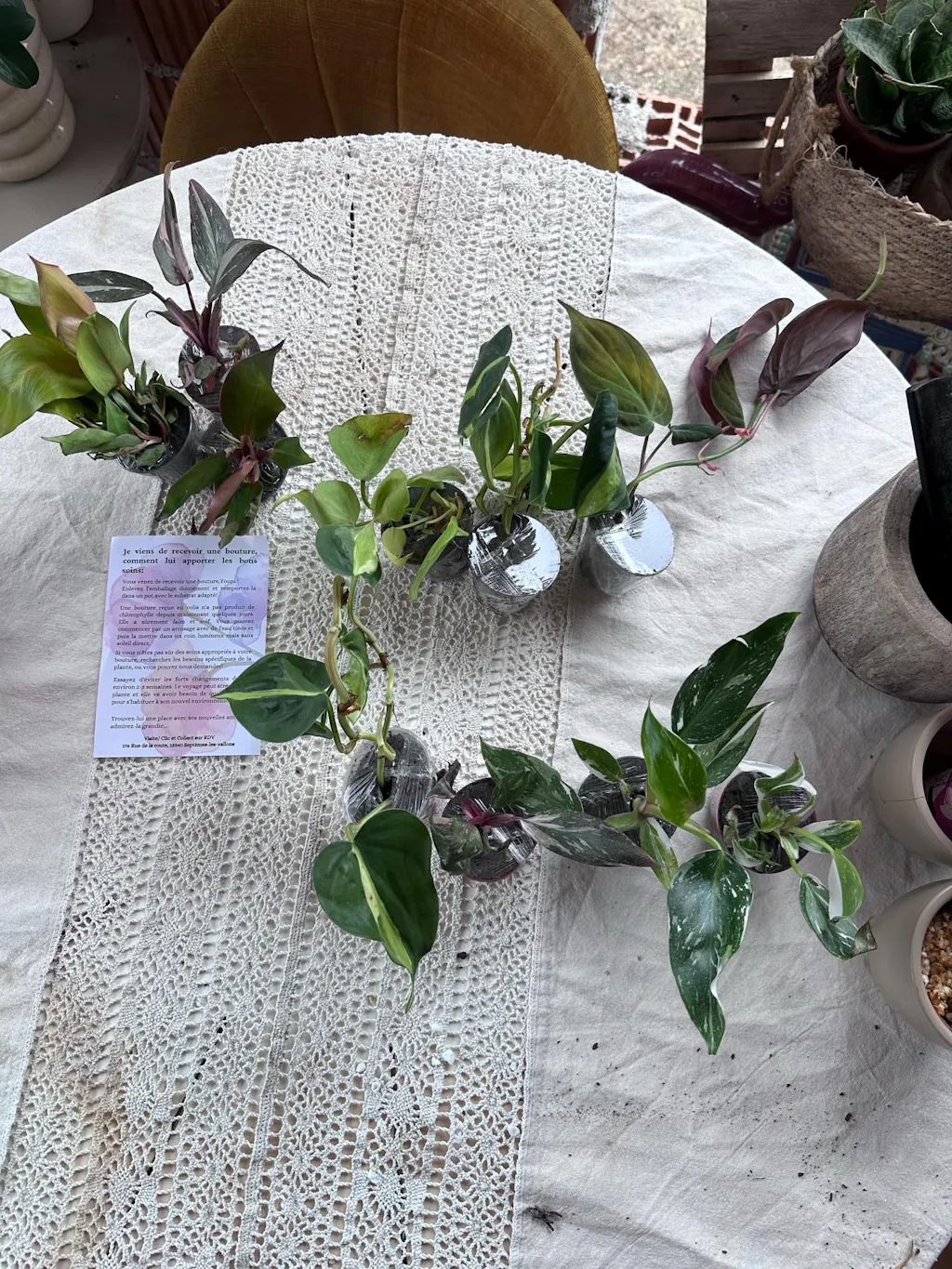 Ein abwechslungsreiches Trio bestehend aus: Philodendron scandens (dunkelgrün), Brazil (gelb/grün gefleckt) und Lemon Lime (fluoreszierendes Grün).
