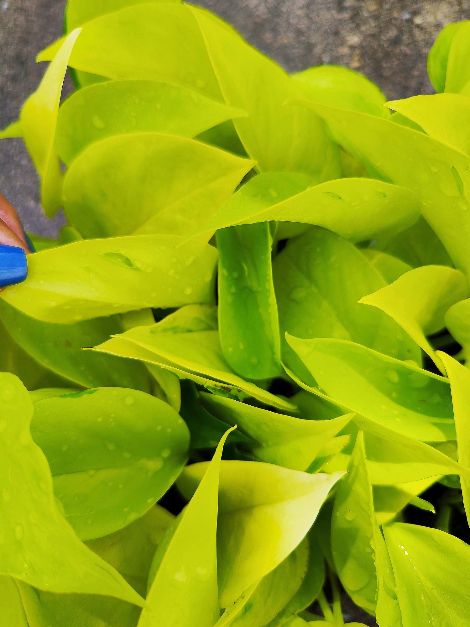 - Herzförmige Blätter in zarten Grün- und leuchtenden Gelbtönen 🍋