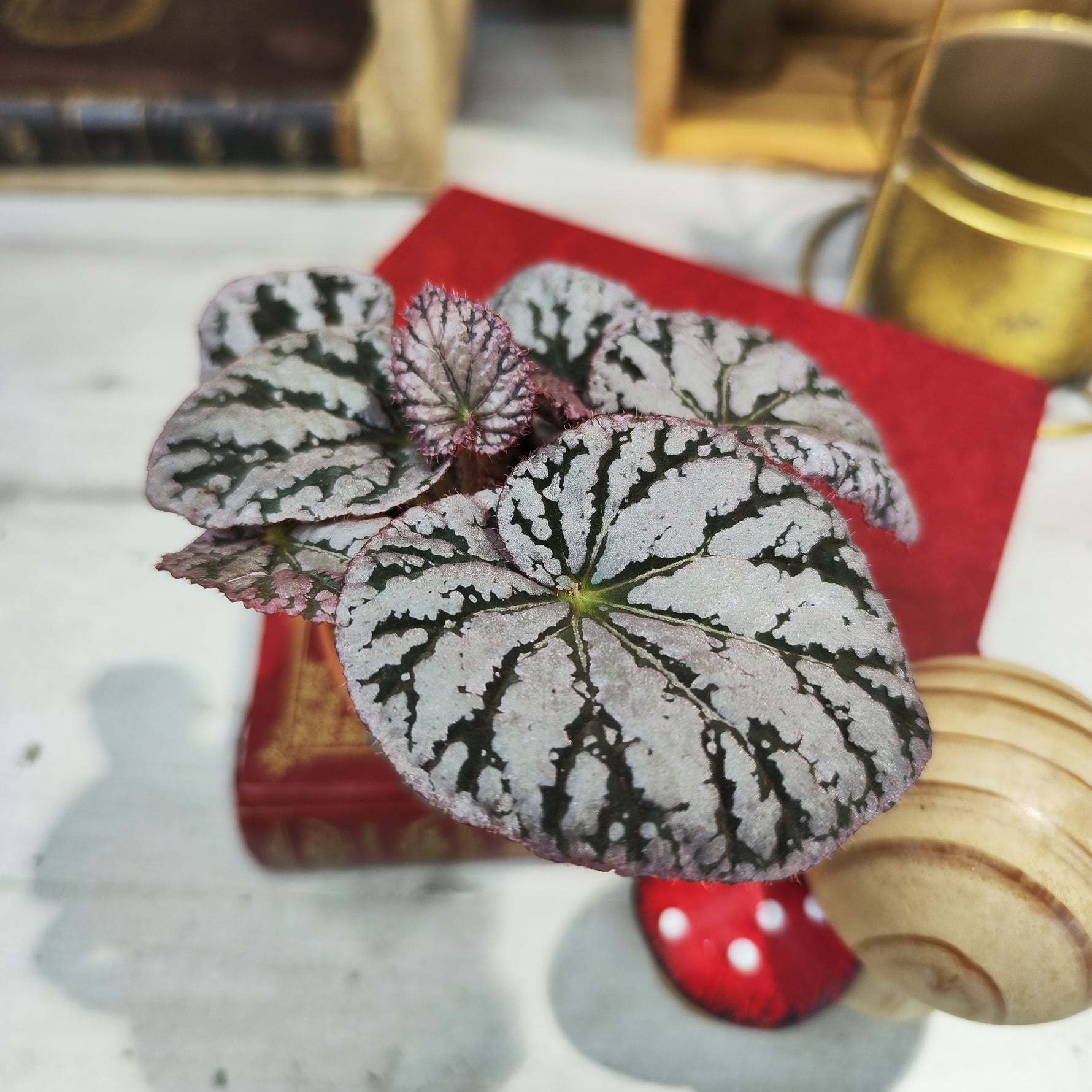 Le Begonia Rex Spirit of Bali se distingue par ses feuilles larges, texturĂ©es et marbrĂ©es de nuances pourpres, argentĂ©es et vert profond. Une vĂ©ritable Ćuvre dâart naturelle qui attire immĂ©diatement le regard.