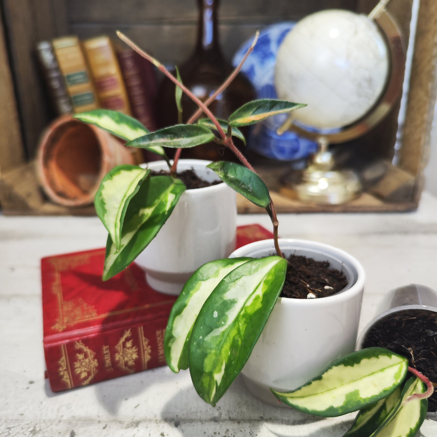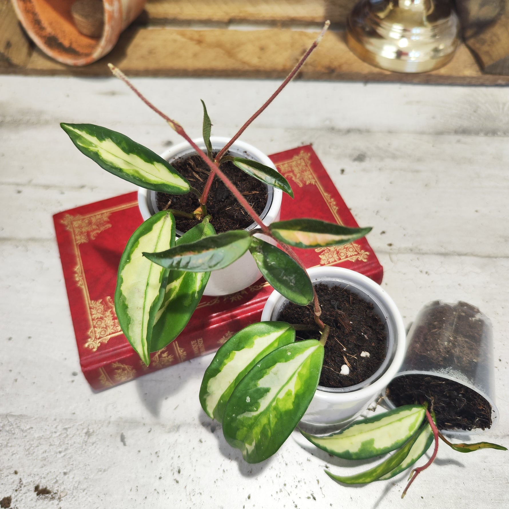 Découvrez la bouture de Hoya carnosa Tricolor narrow leaves, une variété recherchée pour ses feuilles plus étroites que la forme classique et ses magnifiques nuances de vert, crème et rose 🌸. Idéale pour les amateurs de plantes originales, elle apporte une touche lumineuse et élégante à tout intérieur.